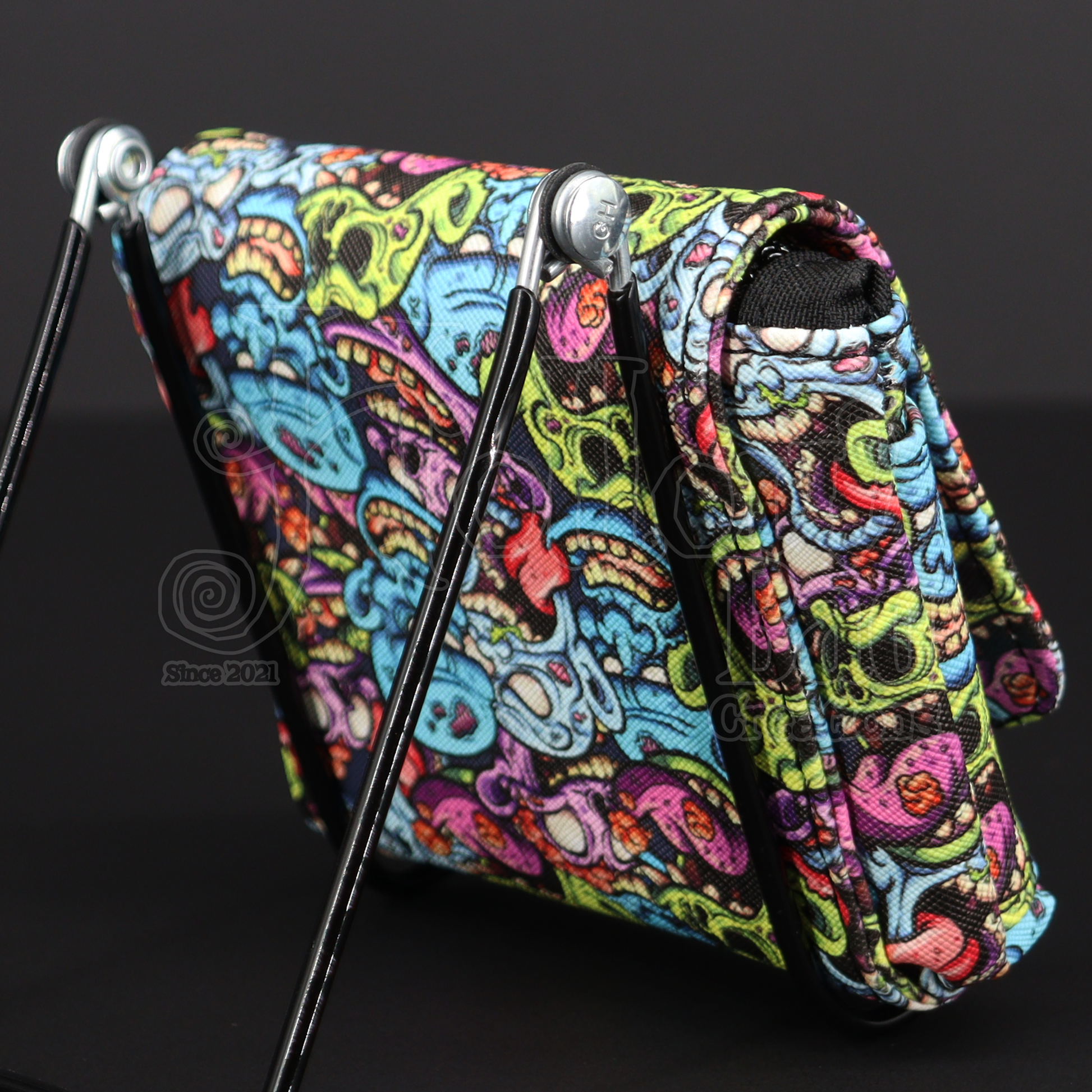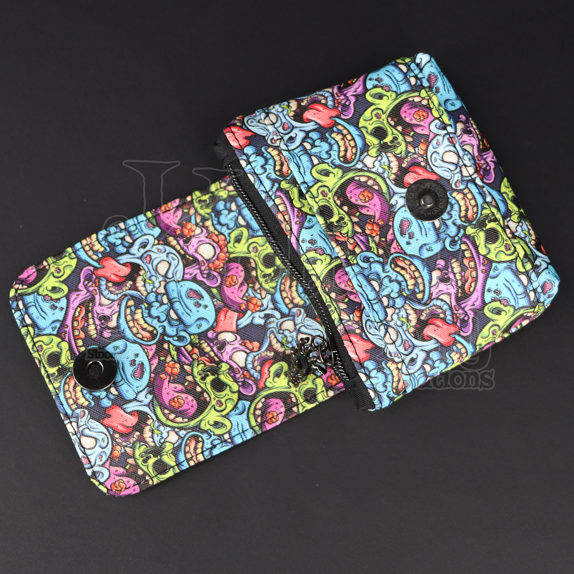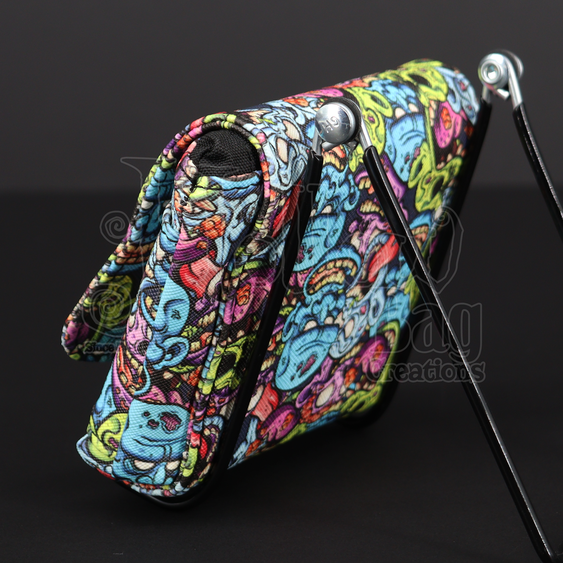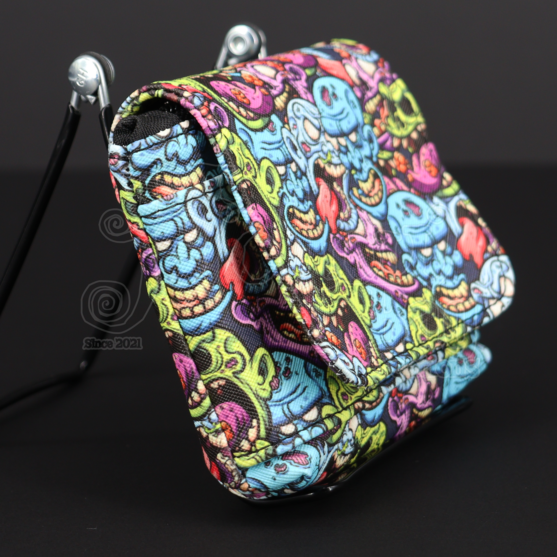 The materials used are custom vinyl for the entire outside, and waterproof canvas on the inside.