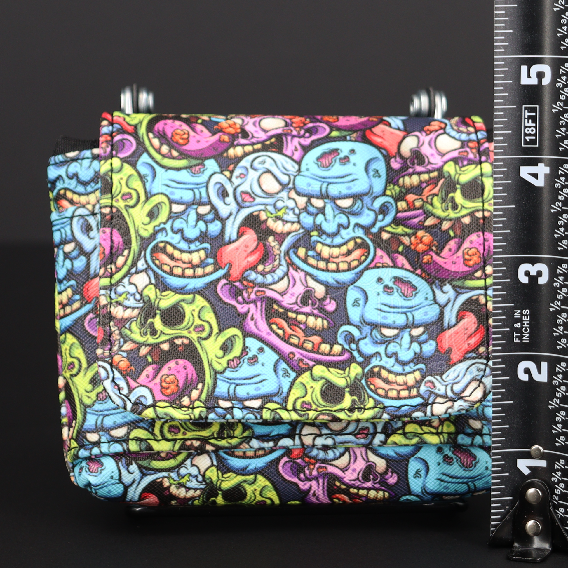 This bag measures approx. 5" long, 1.5" wide, and 4.25" tall
