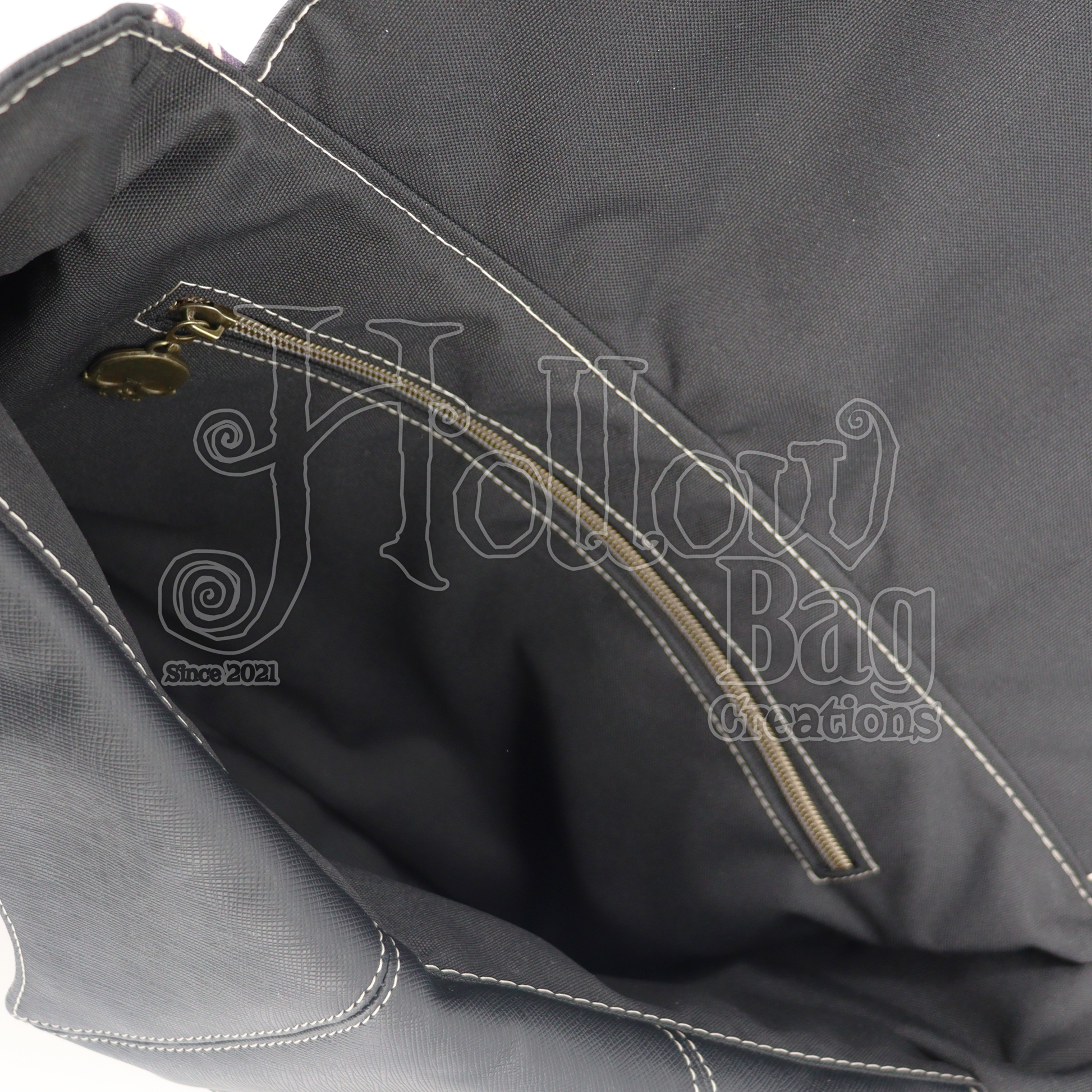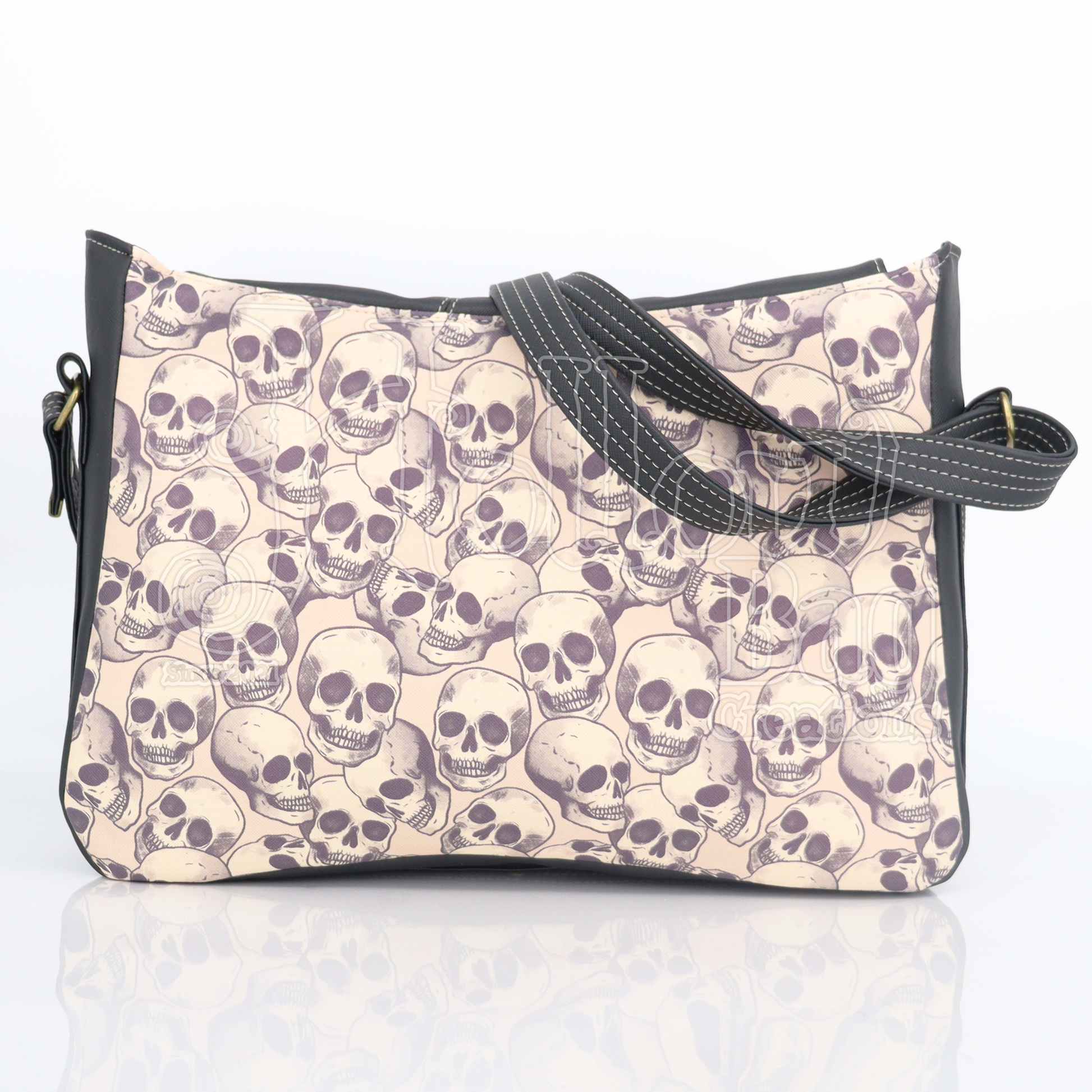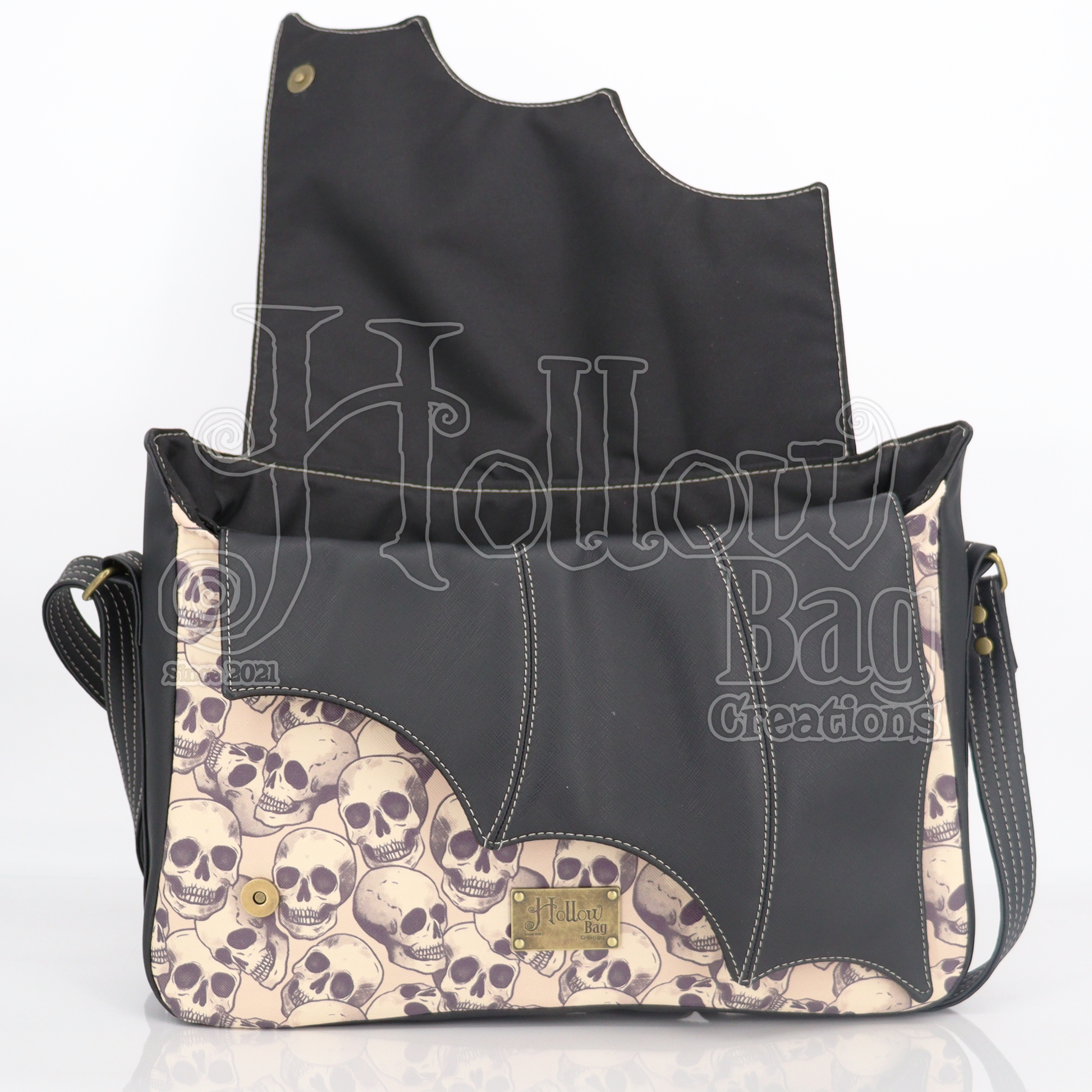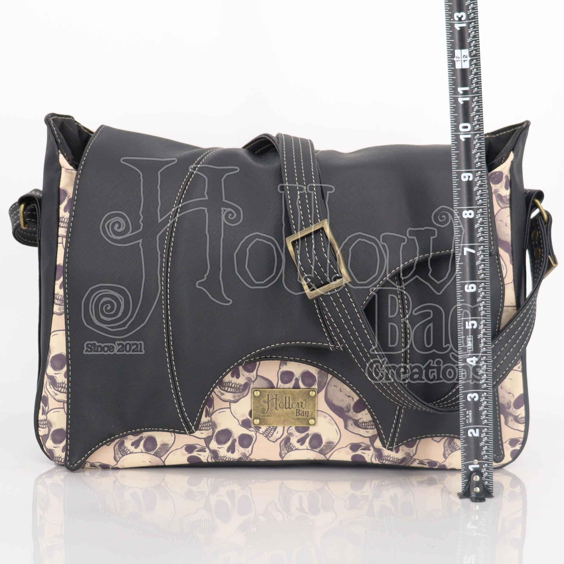 This messenger bag measures approx 14.5" long x 3" wide x 10.5" tall