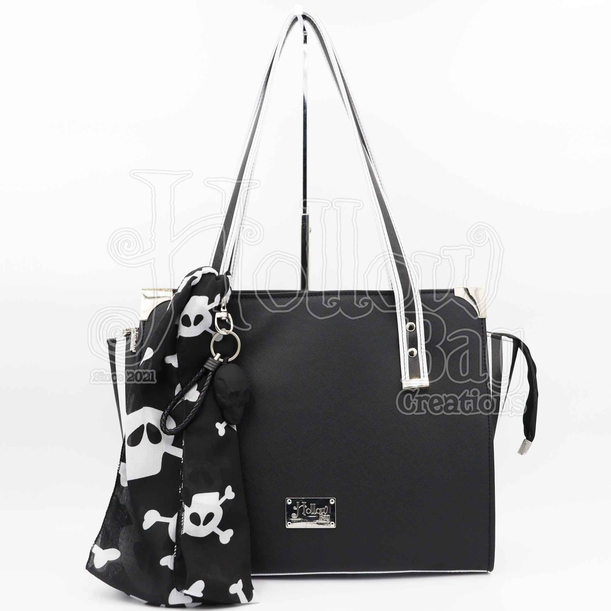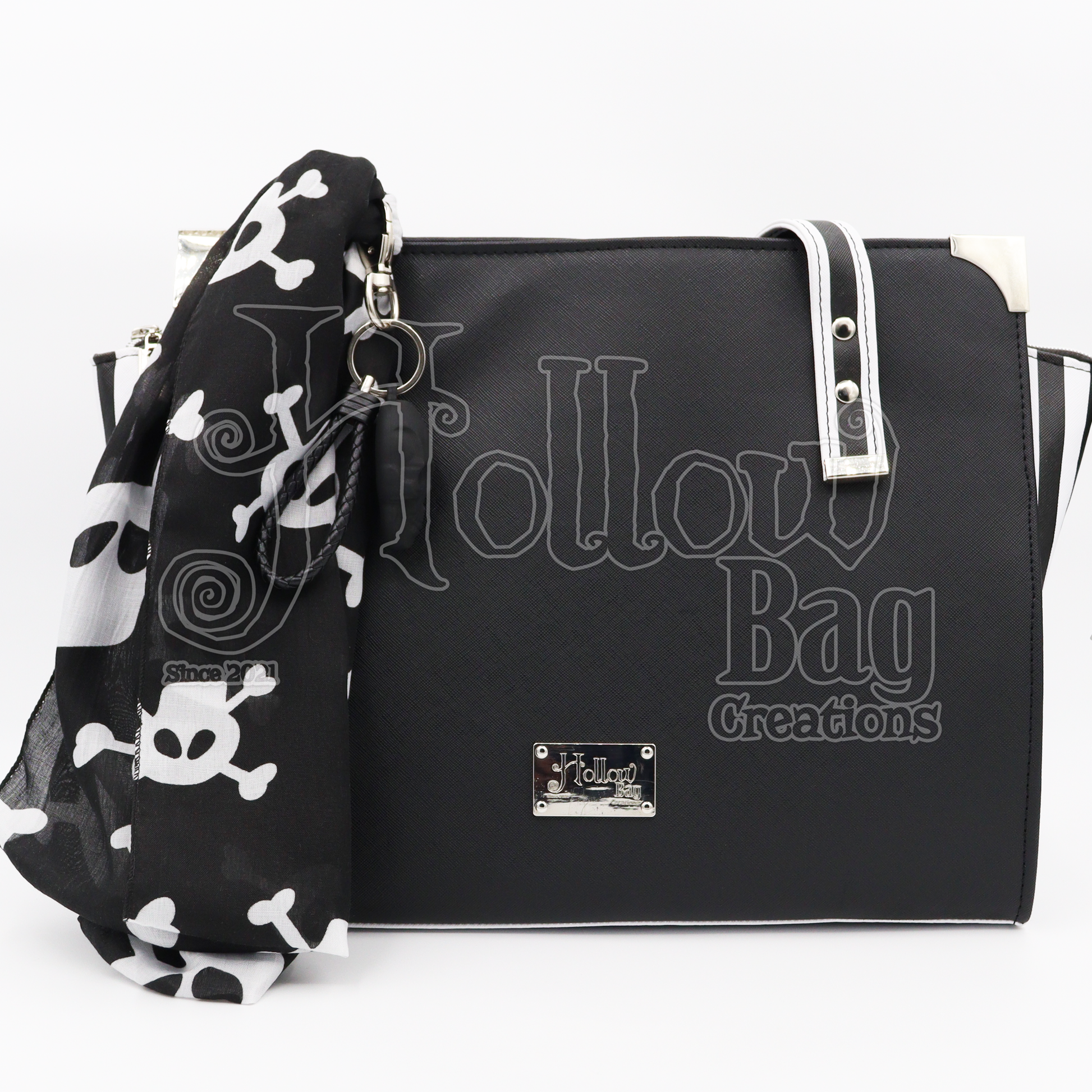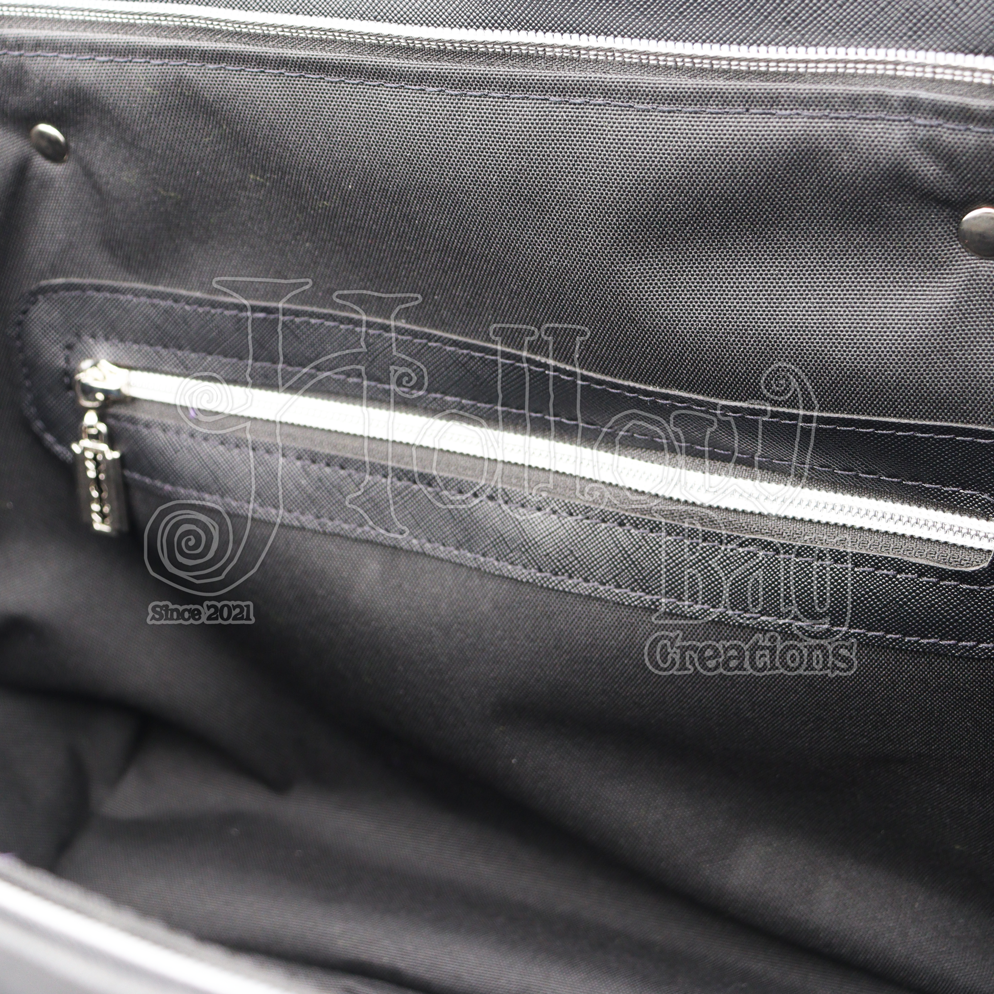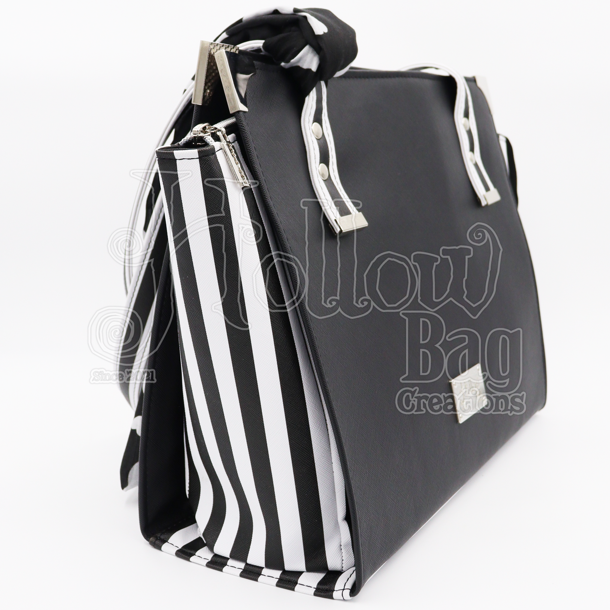 The bag fabrics used are custom vinyl for the entire outside and handles, and waterproof canvas & custom vinyl on the inside.