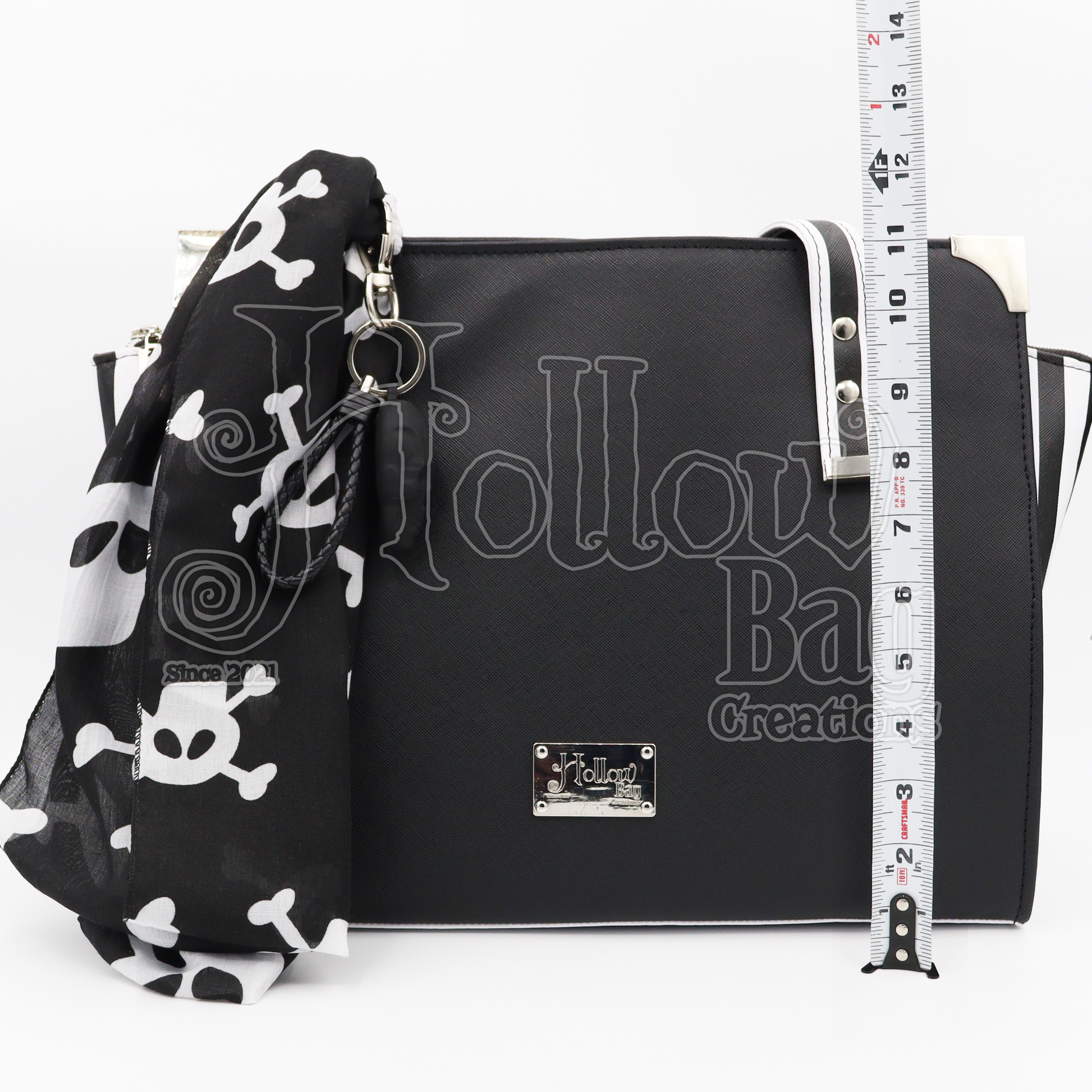 This bag measures approx 14"-17.5" long, 6" wide (top expands to approx 13"), up to 12" deep, and is 11" tall (21" including the handles)
