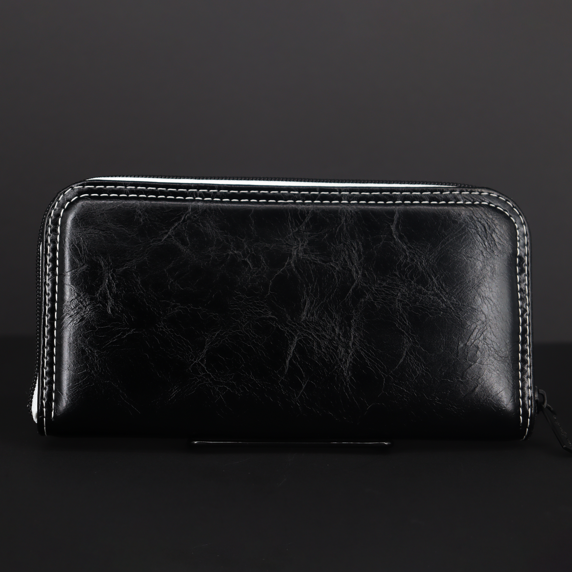 This wallet measures approx. 8 1/2" long, 1" wide, and 4 1/2" tall