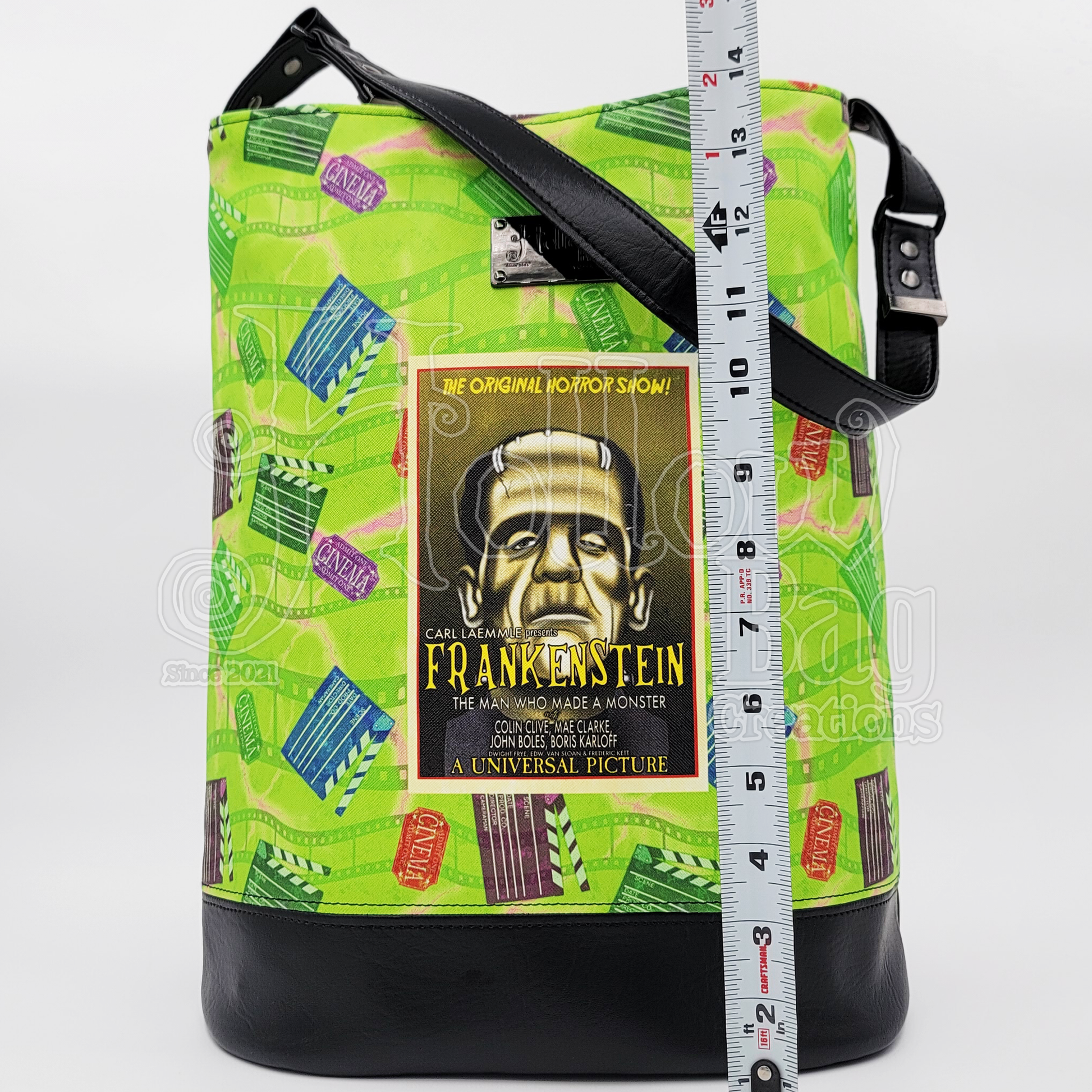 This bag measures approx 11" in length, approx 6.25" in width, and 15" in height (24" including the handle) with an inner depth of approx 14"