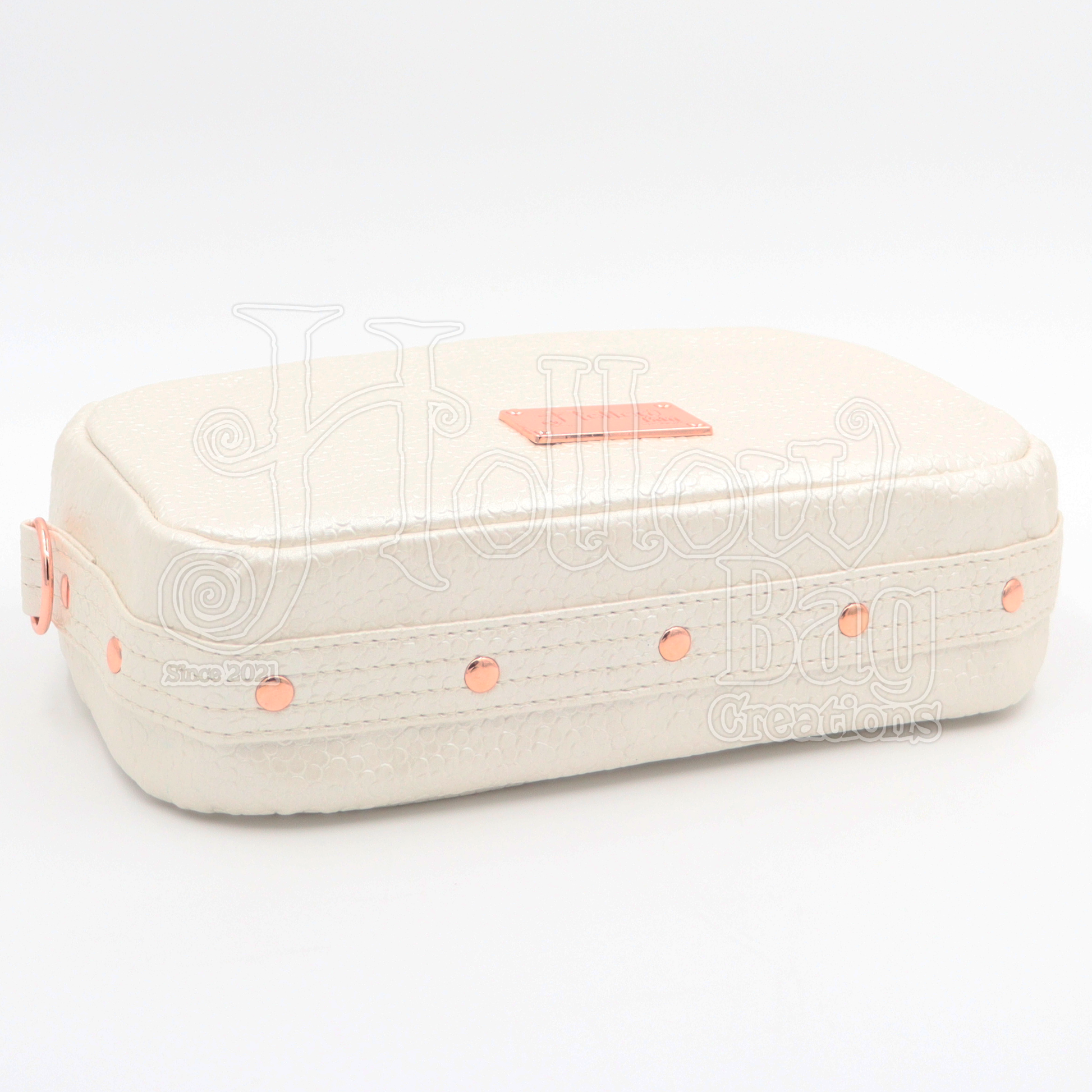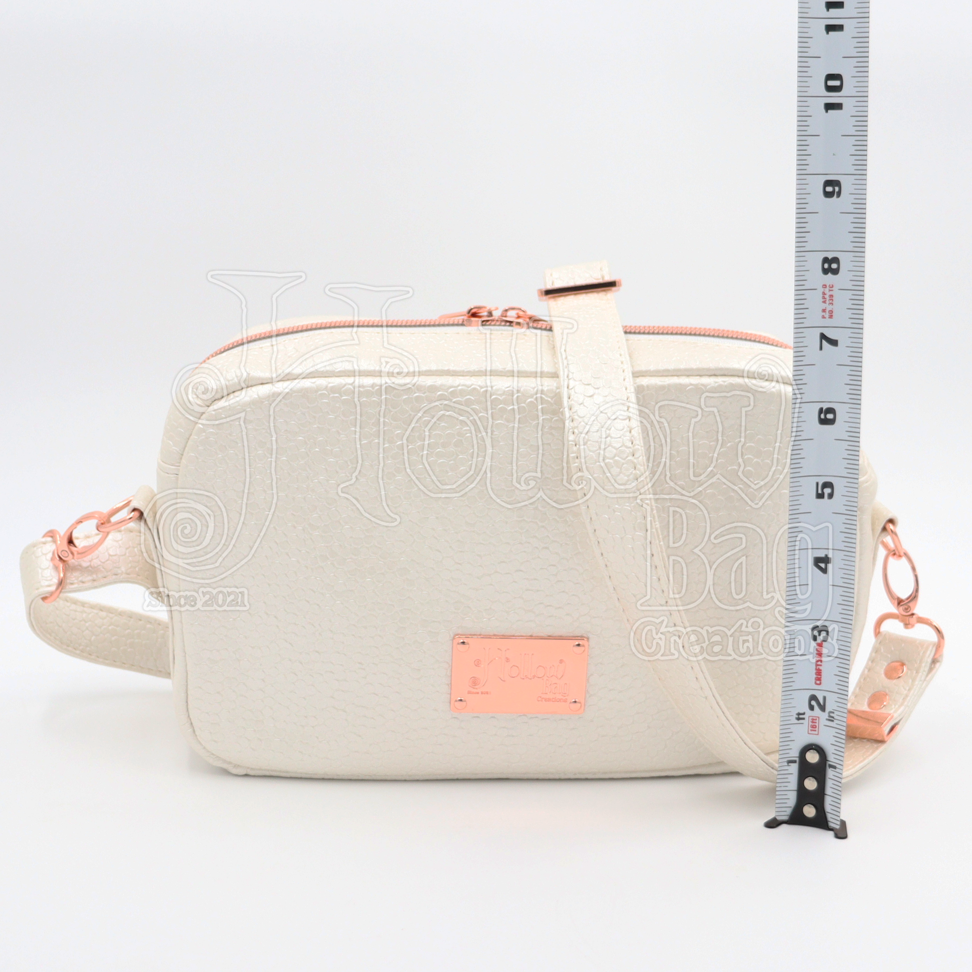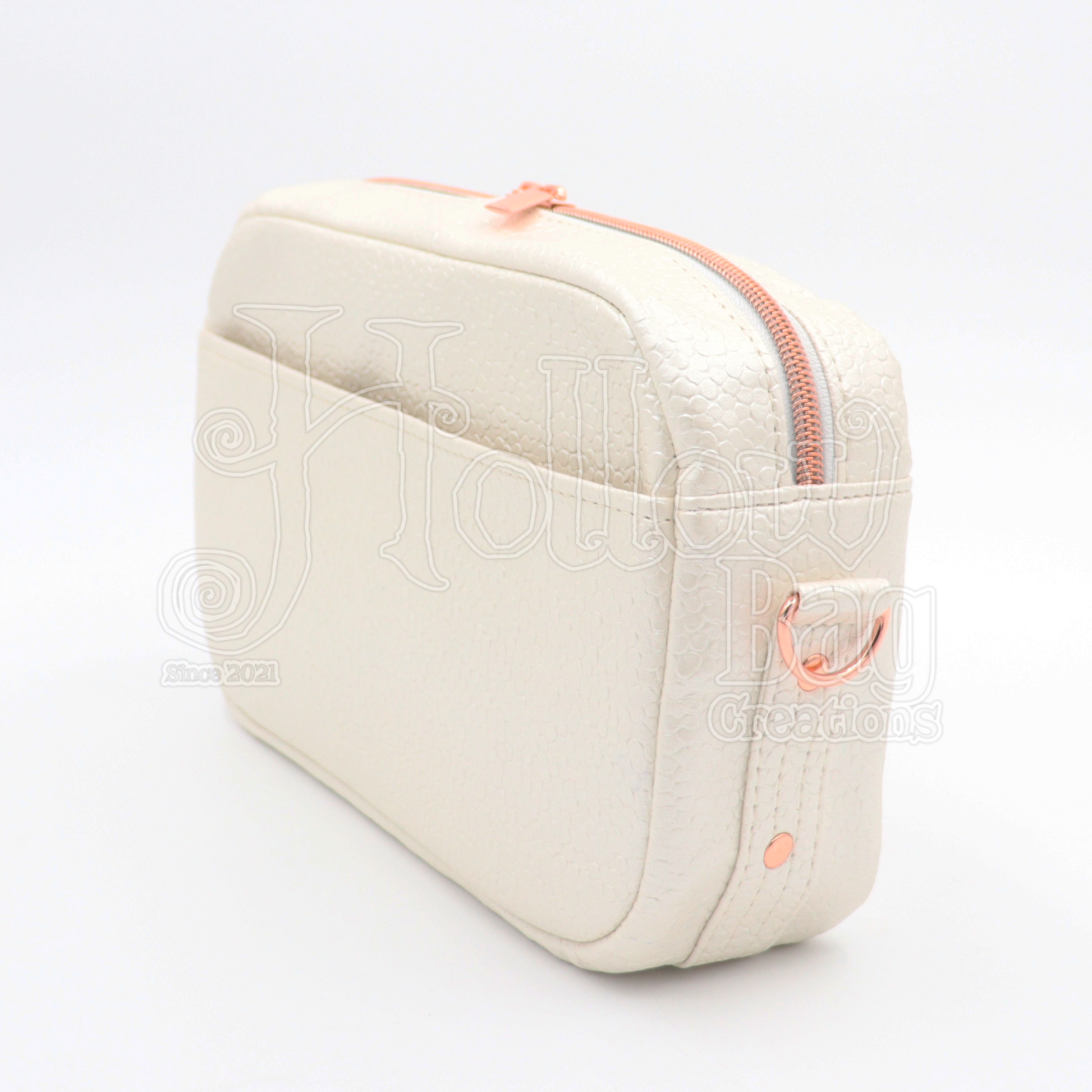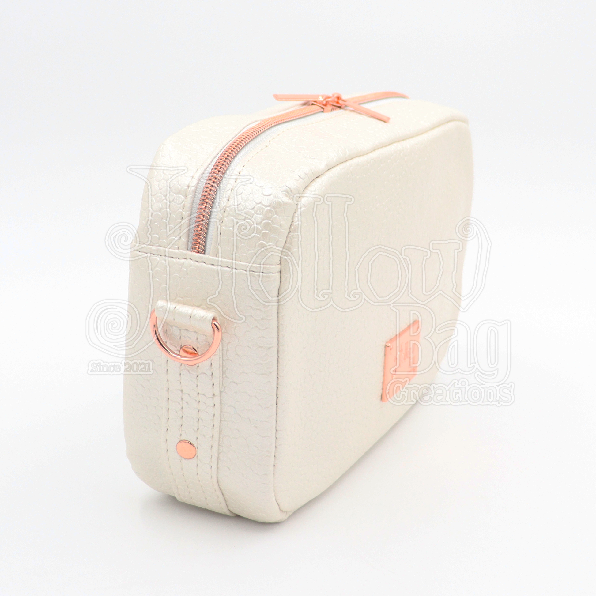 This bag measures approx 10" wide, up to 6" deep, and is 3" tall