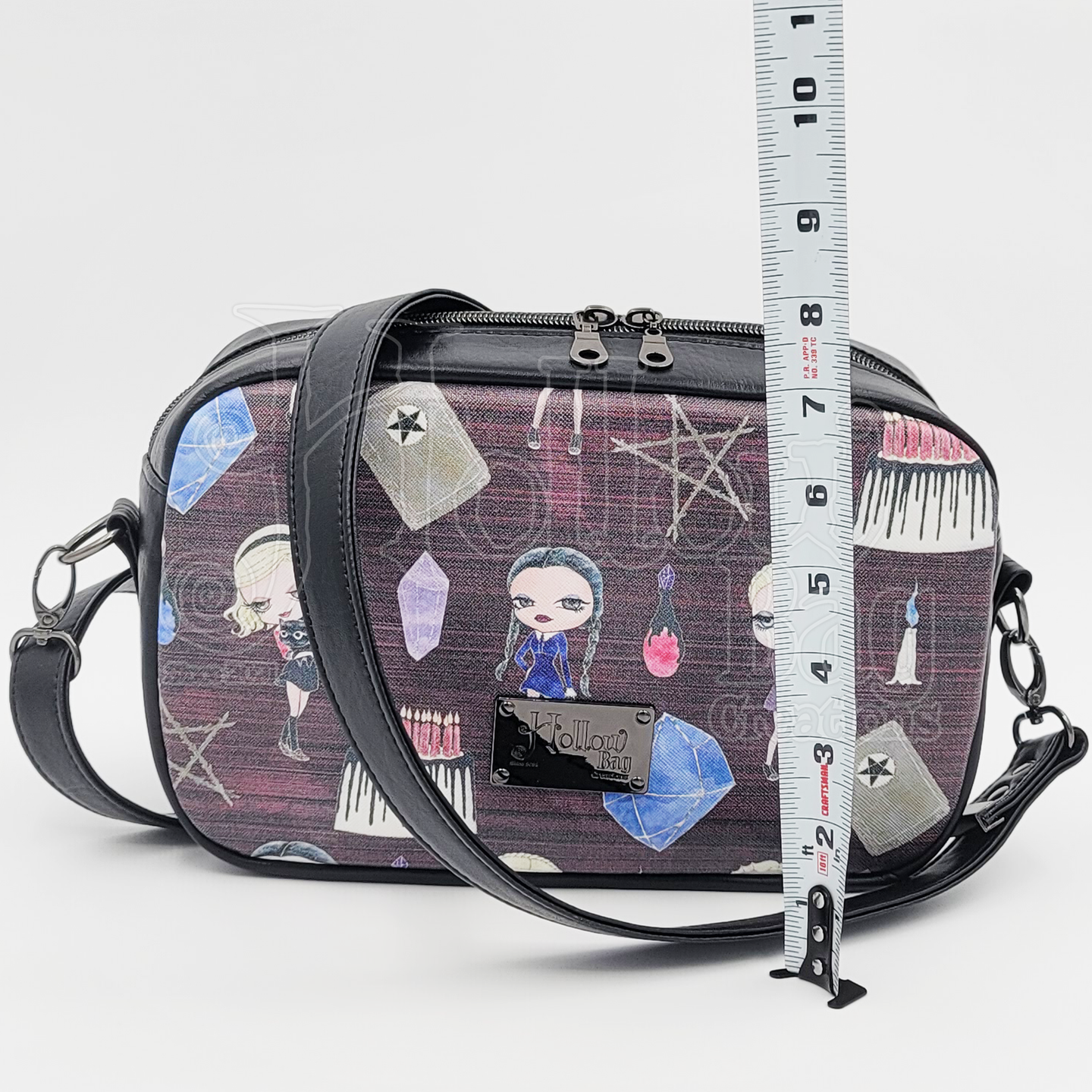 This bag measures approx 10" wide, up to 6" deep, and is 3" tall