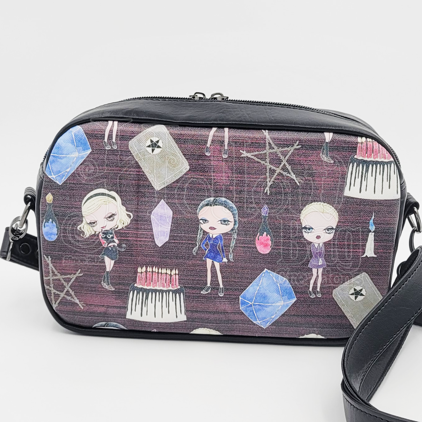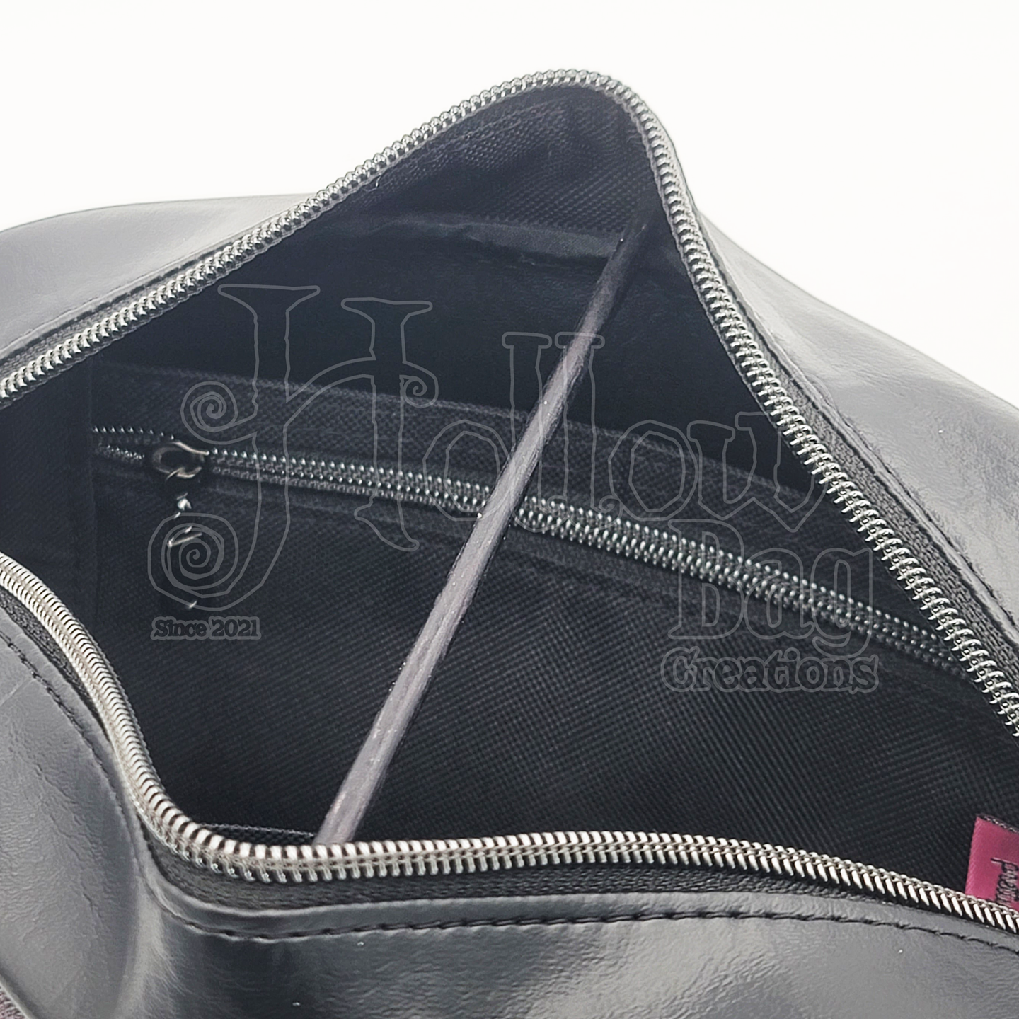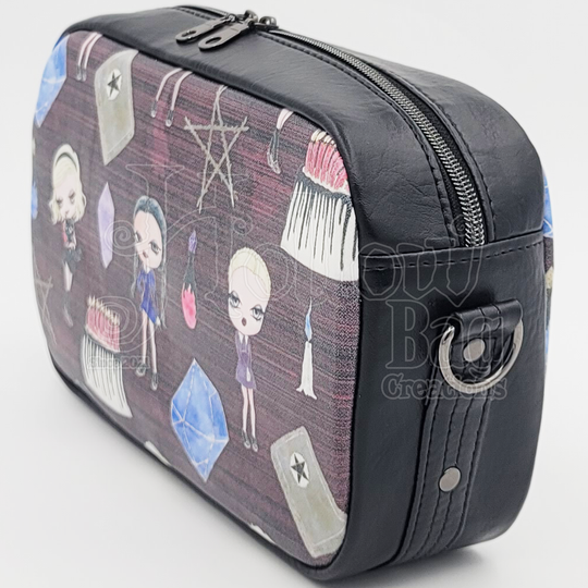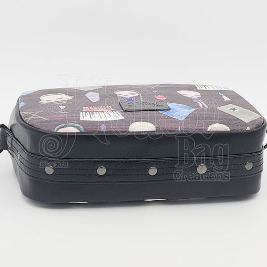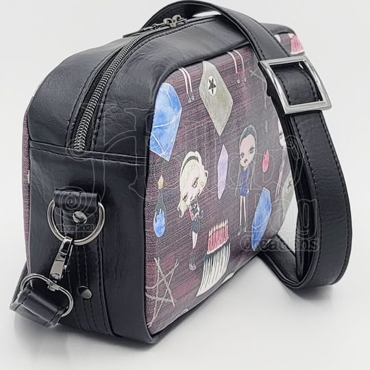 The bag fabrics used are custom vinyl and marine vinyl for the entire outside and strap, and waterproof canvas on the inside.