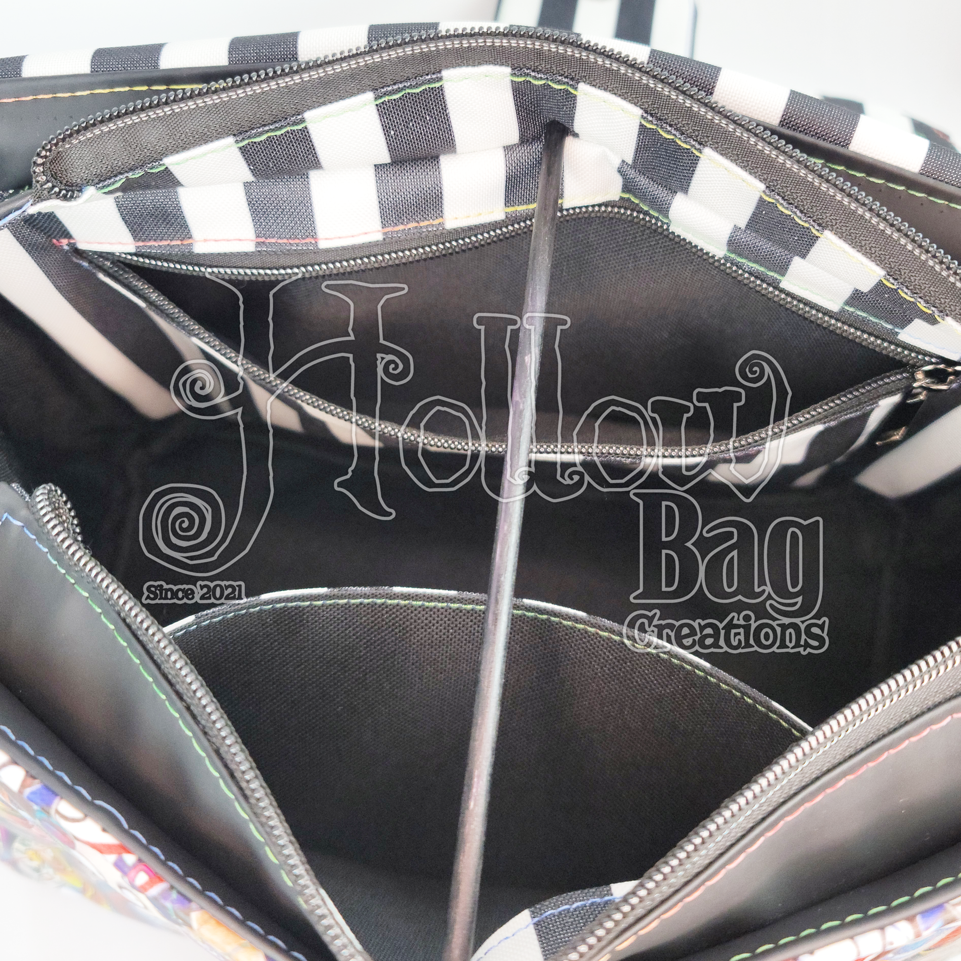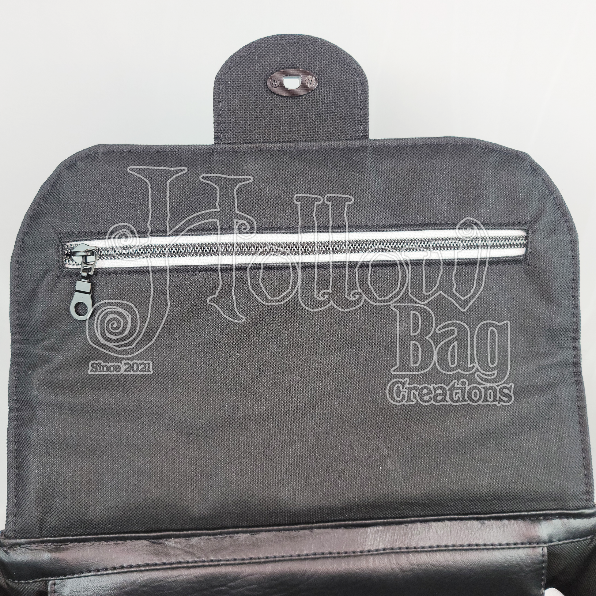 You may not mass-produce products made with this pattern for large-scale businesses/sales. Small businesses only. You also may not distribute/share this pattern or any parts of it with anyone in any way. You may do a video that does not show pattern pieces or give measurements, but please share it in the Hollow Bags pattern group on Facebook