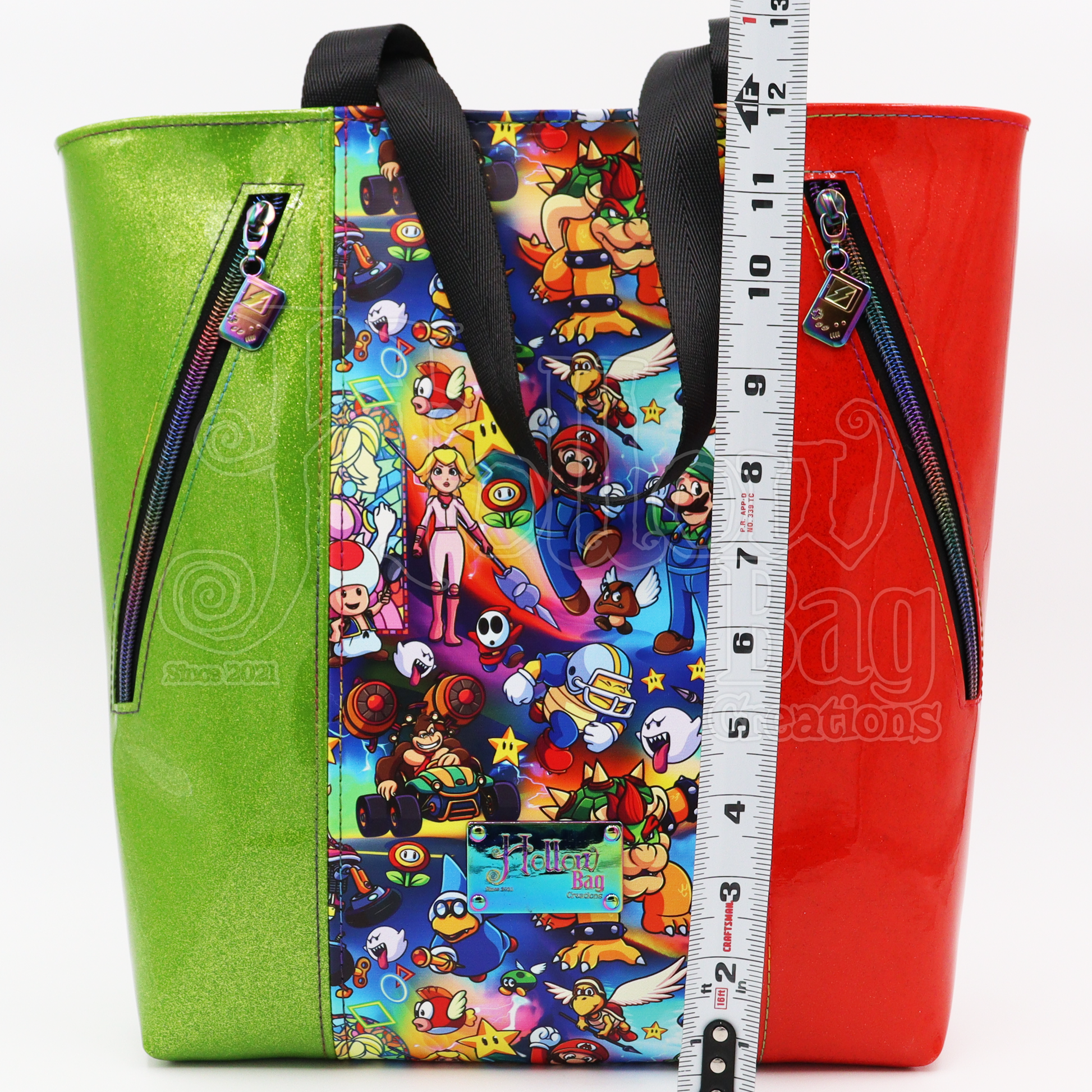 This bag measures approx 9" long x 4" wide x 11" tall ( 19" including handles)