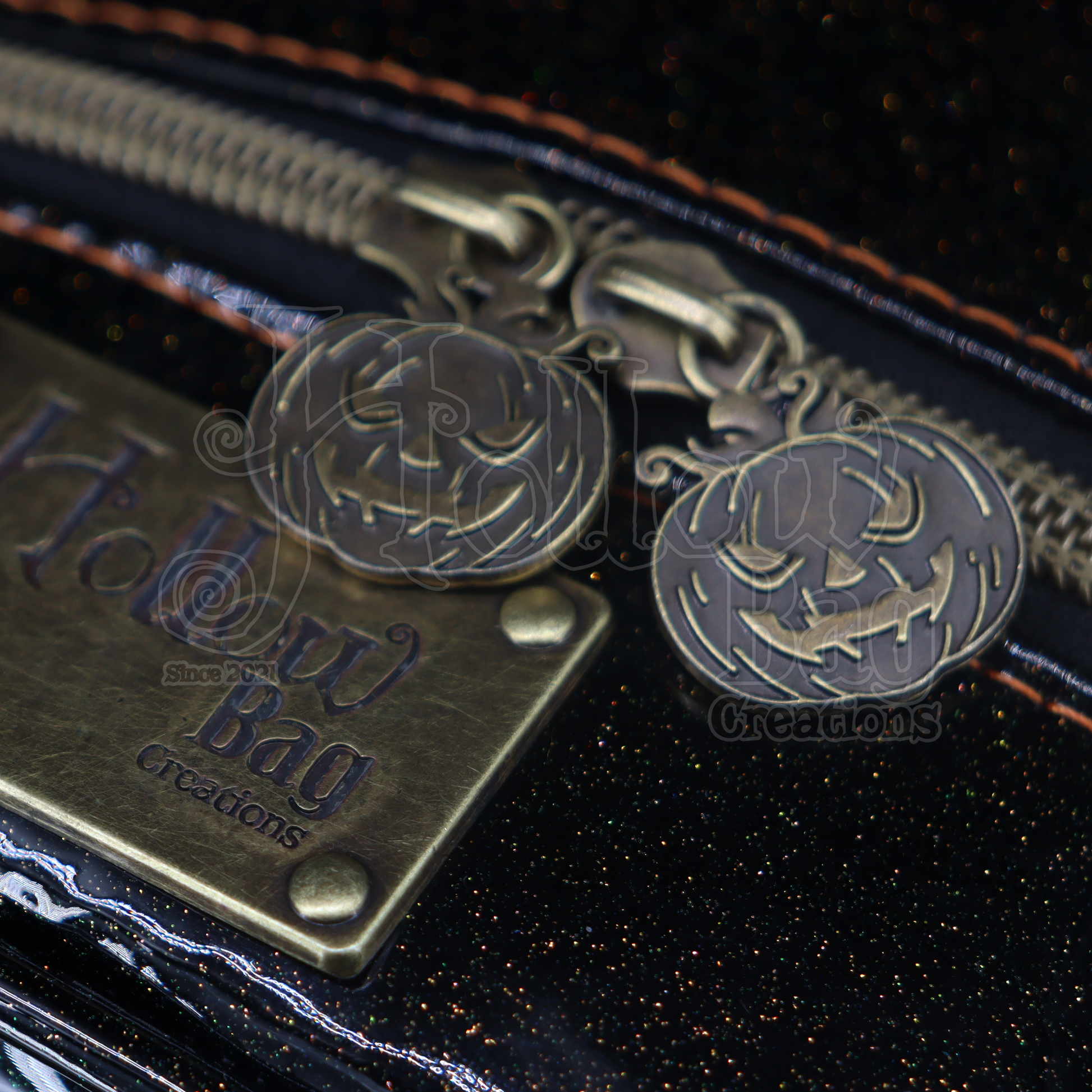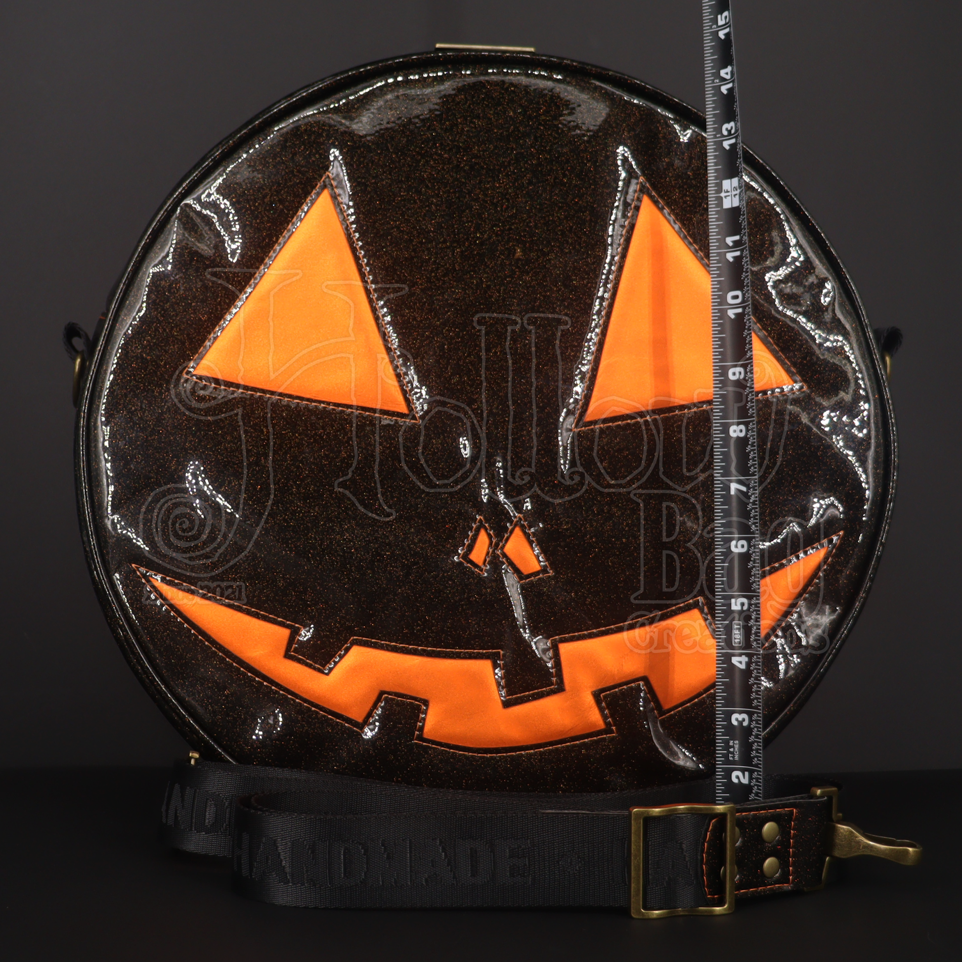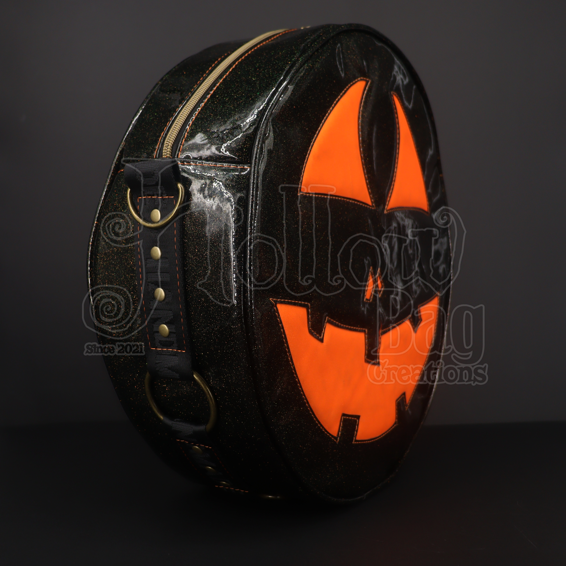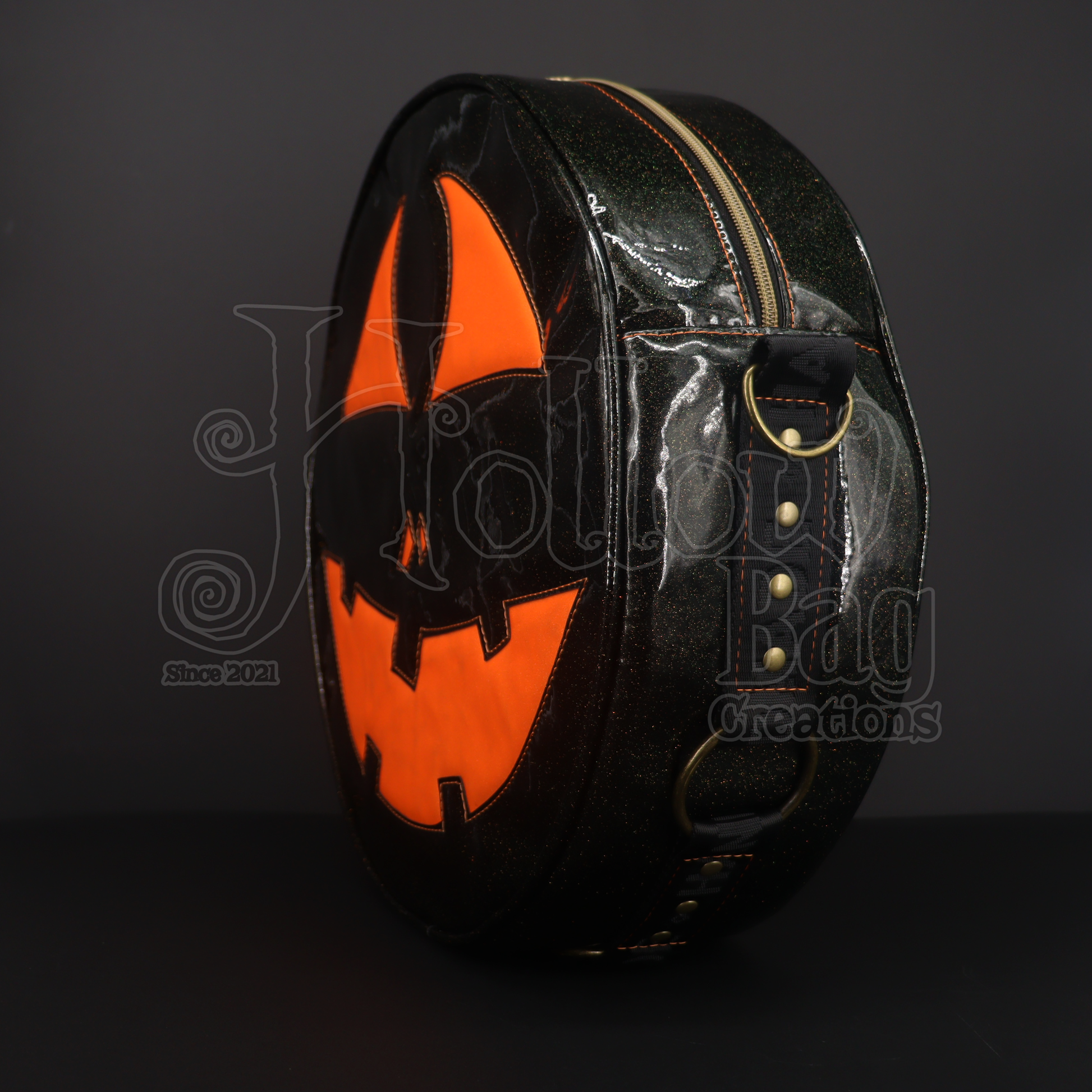 The bag fabrics used are custom vinyl for the entire outside, and custom cotton on the inside. Includes a webbing crossbody strap.