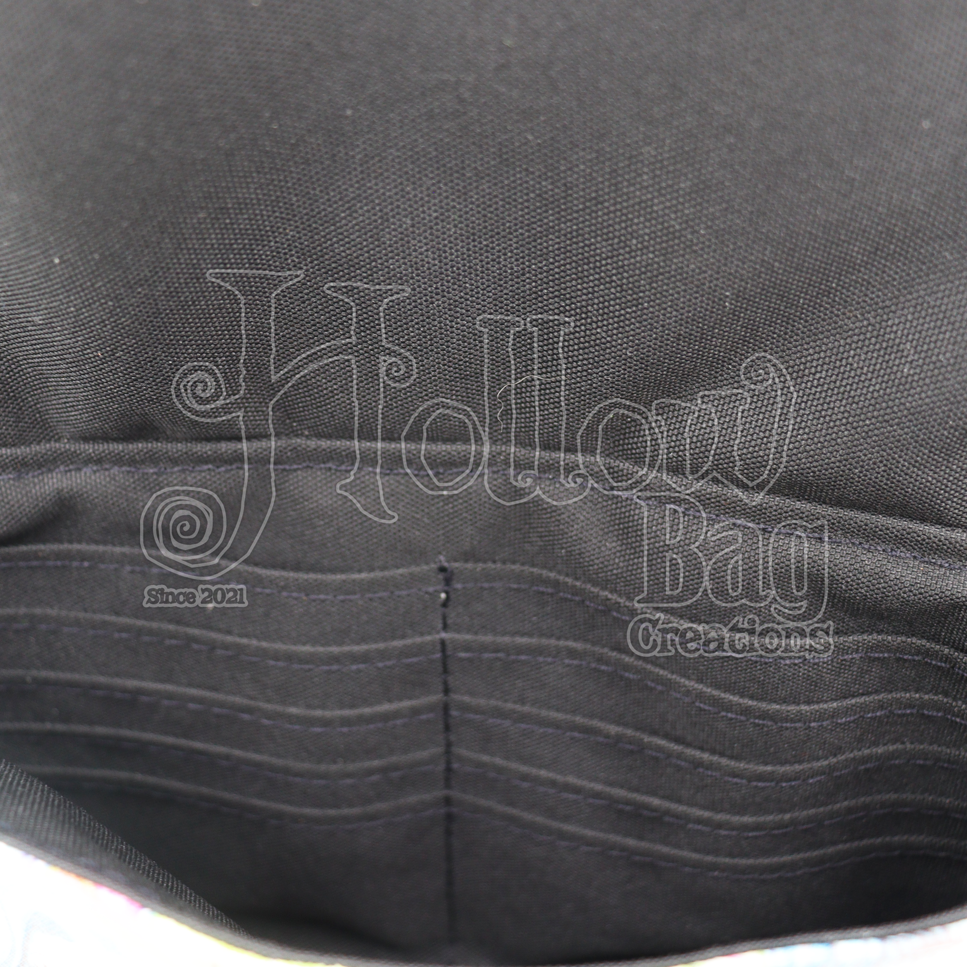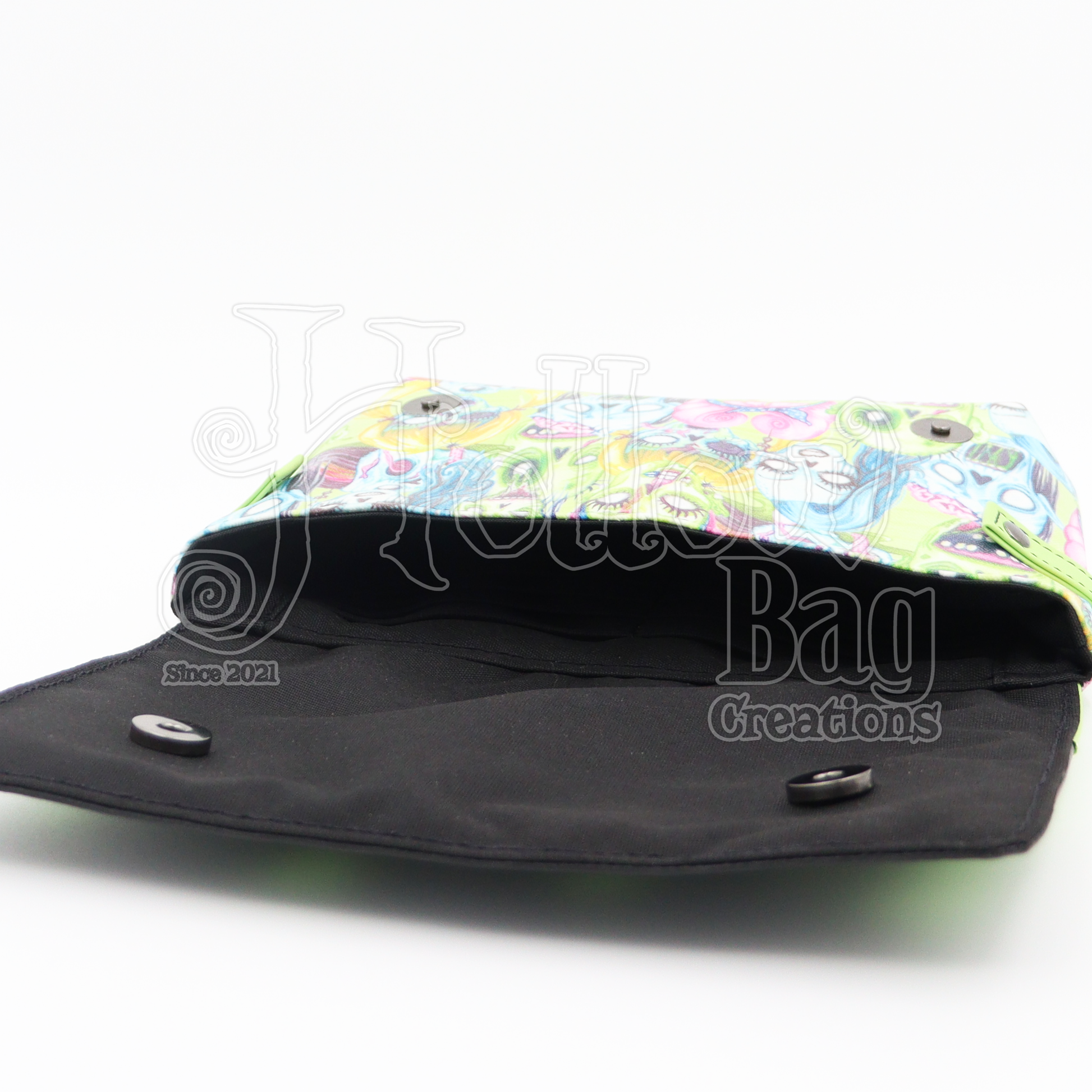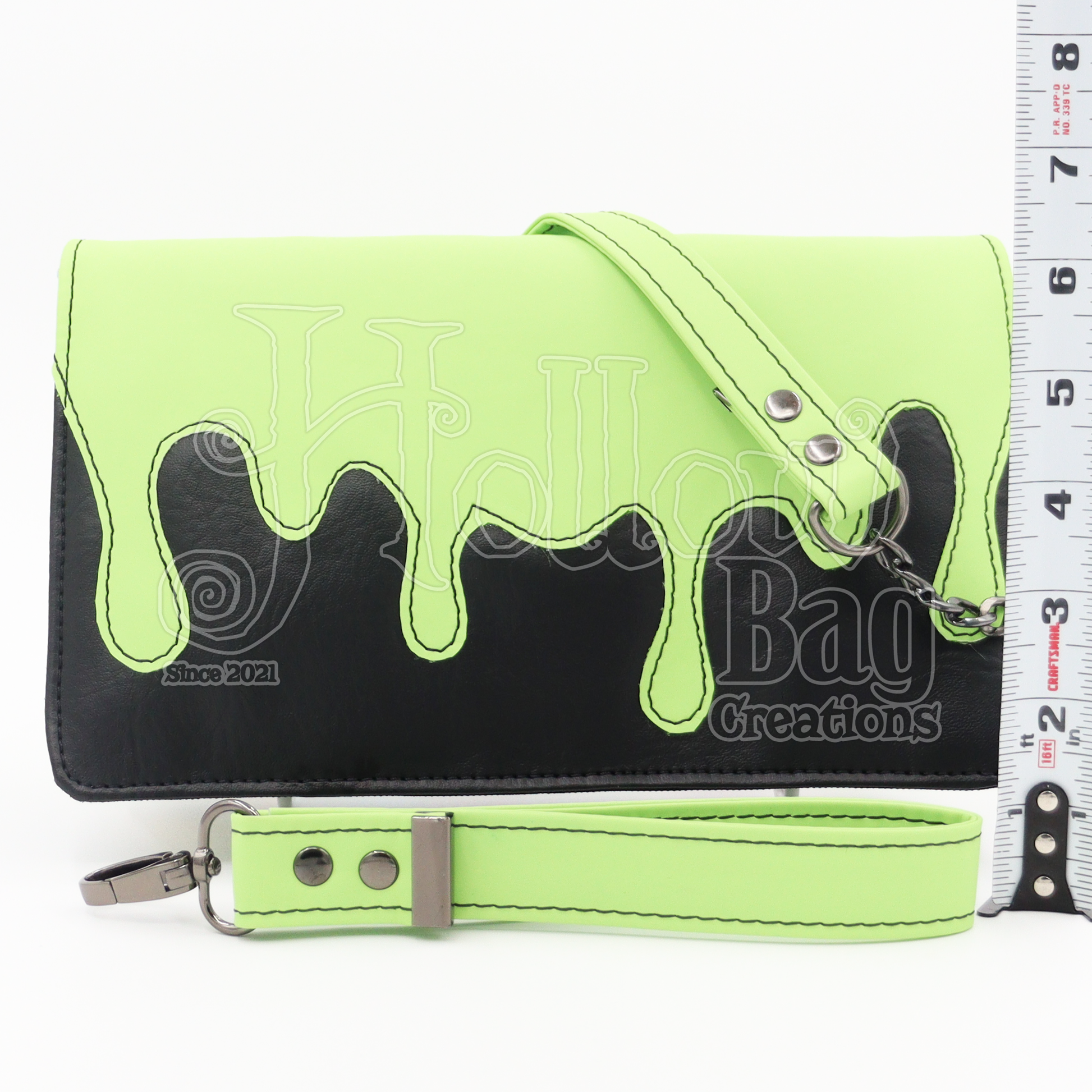This clutch measures approx 9.25" long x 1"-2" wide x 5.5" tall