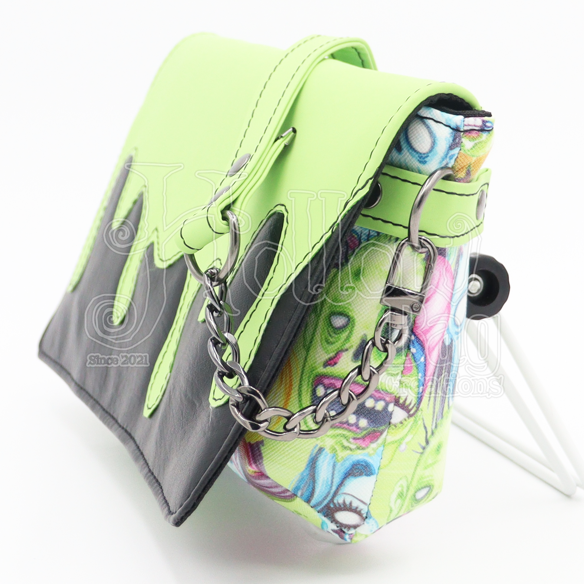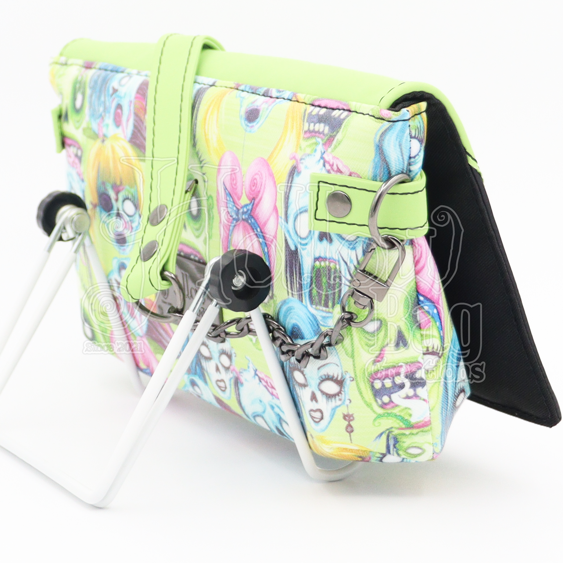 The bag fabrics used are custom vinyl & marine vinyl for the entire outside and handles, with waterproof canvas on the inside