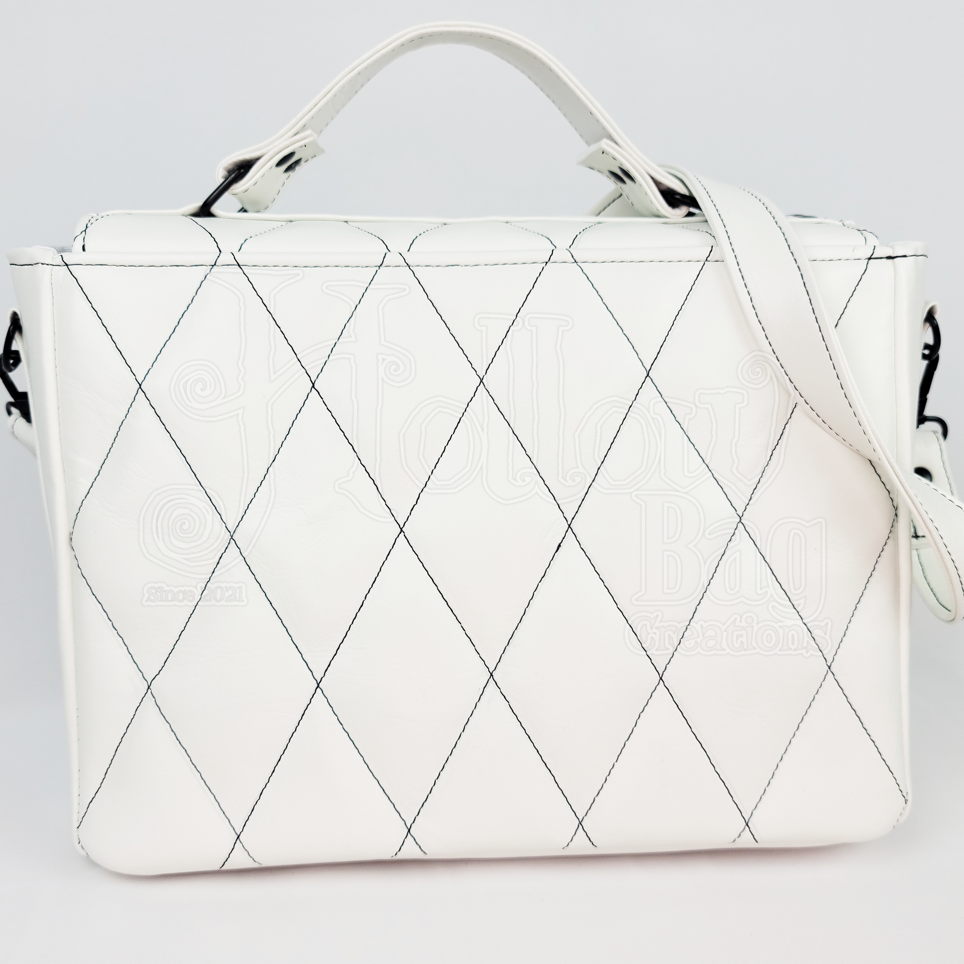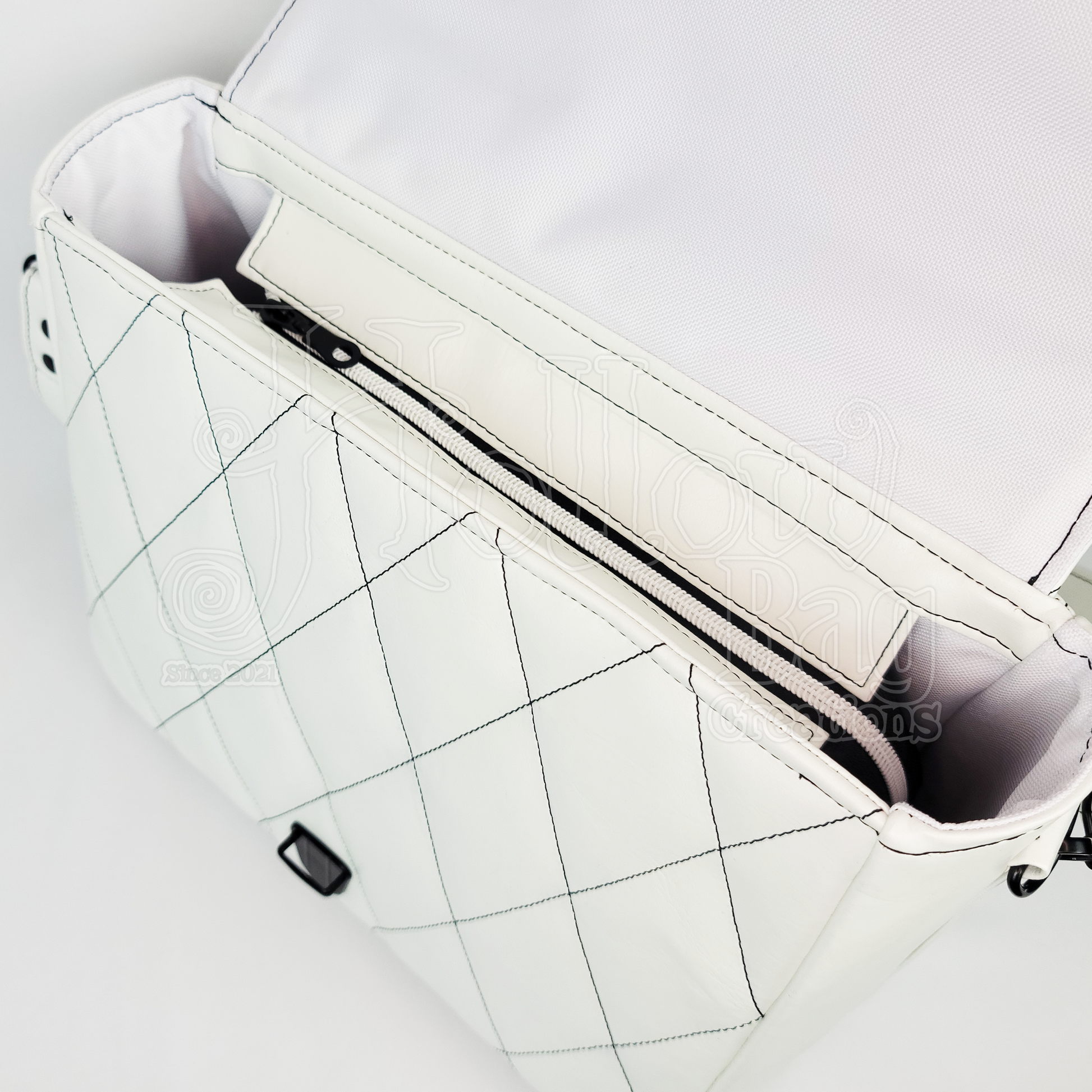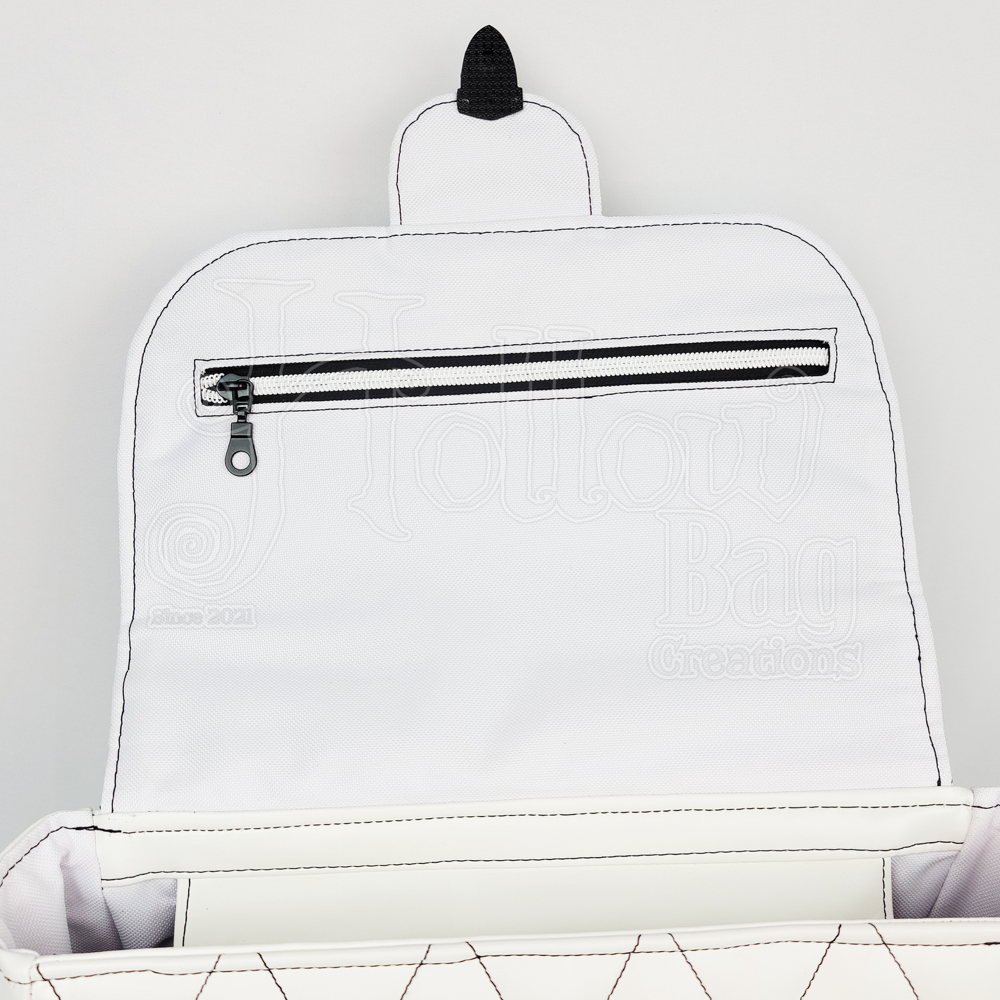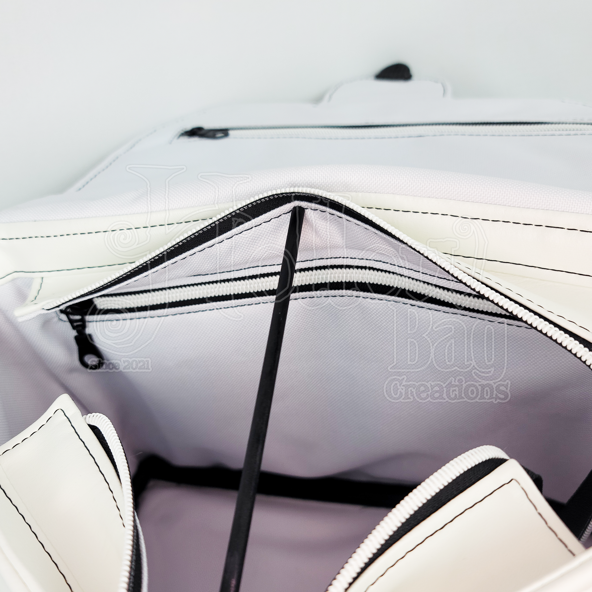 The bag fabrics used are marine vinyl for the entire outside and handles, and waterproof canvas on the inside.