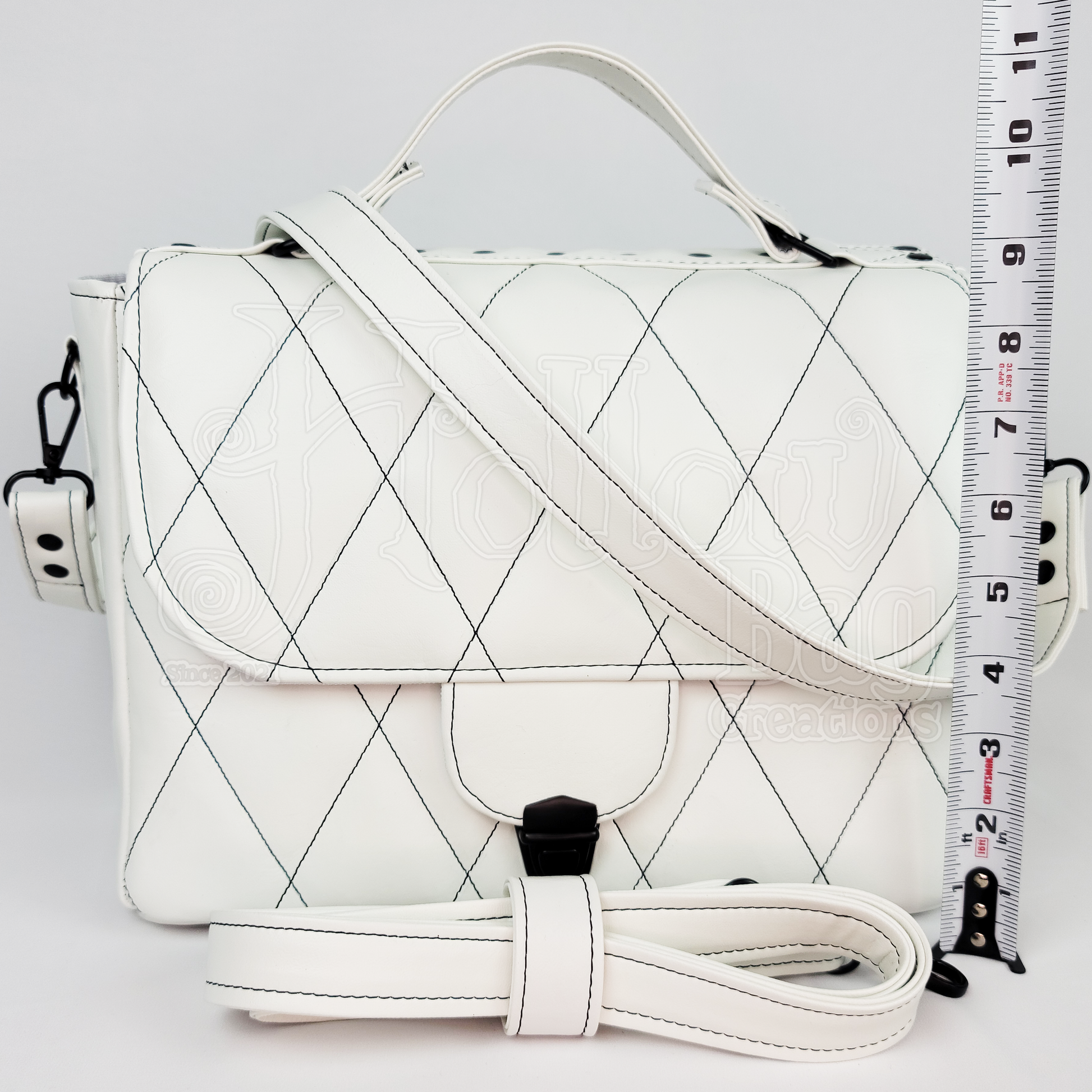 This bag measures 12" x 3-6" wide (top & bottom), and is 8" deep
