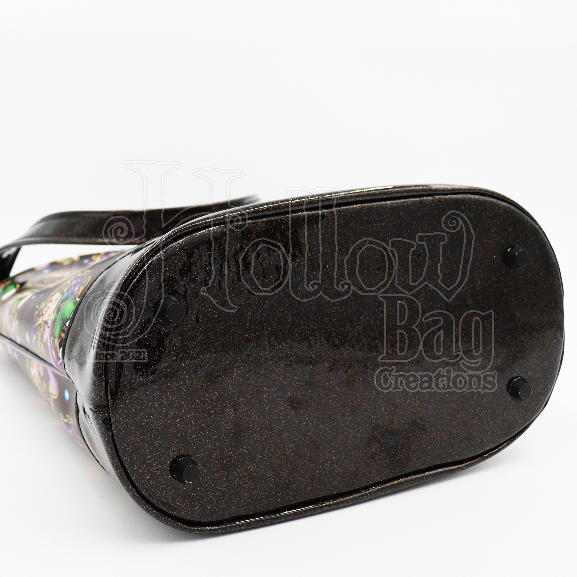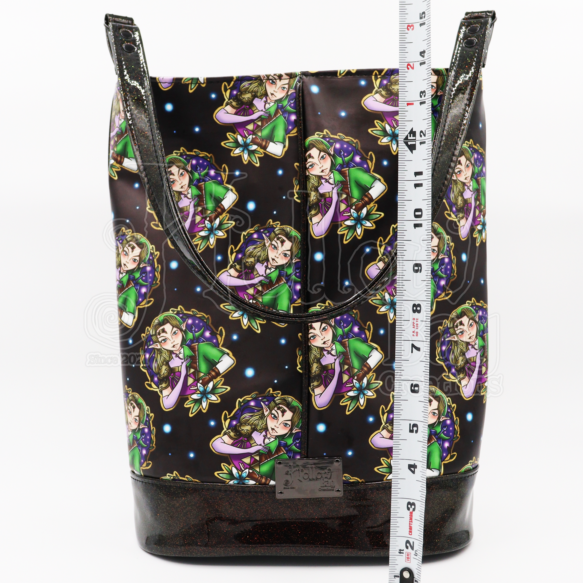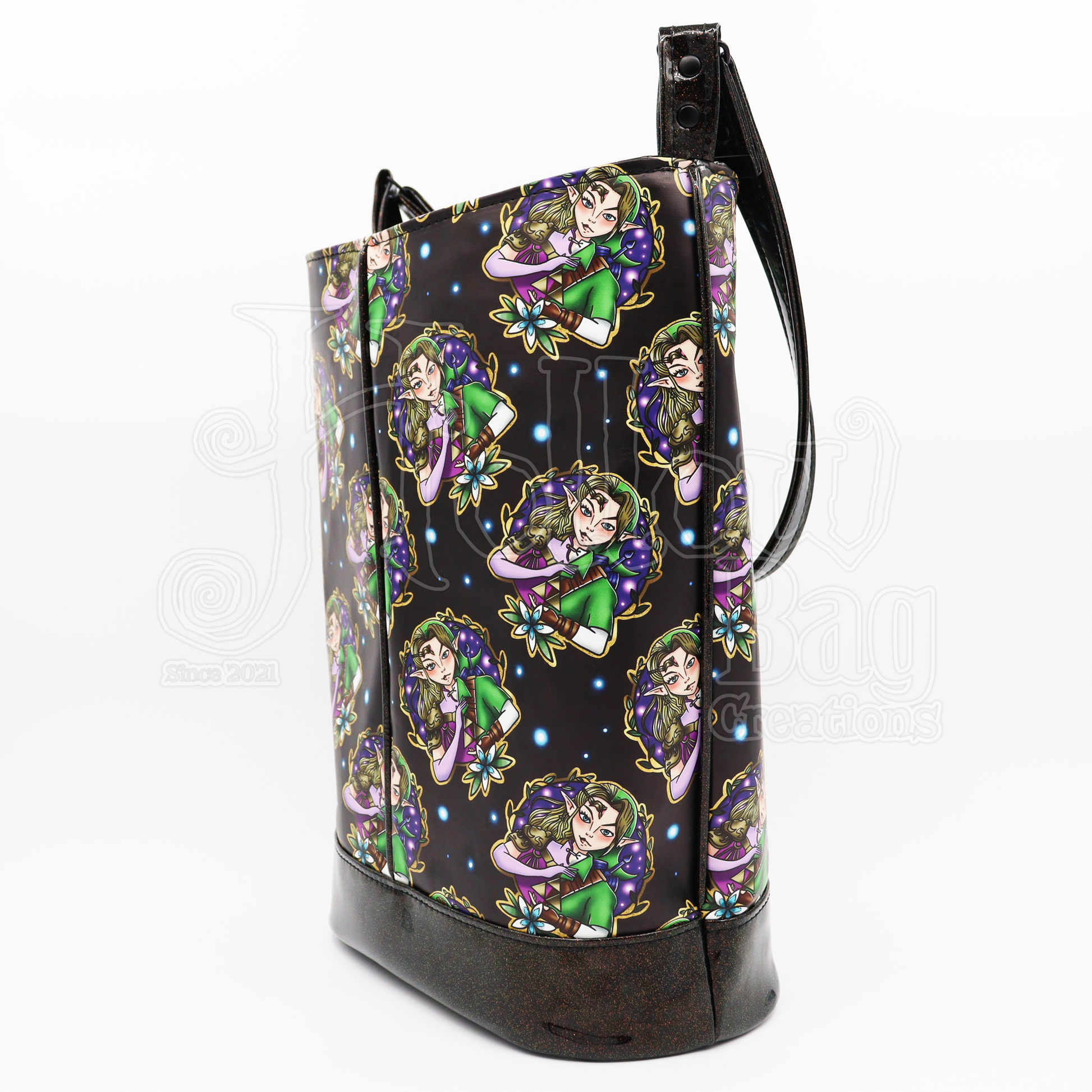 The bag fabrics used are custom vinyl for the entire outside and handle, with waterproof canvas for the inner lining.